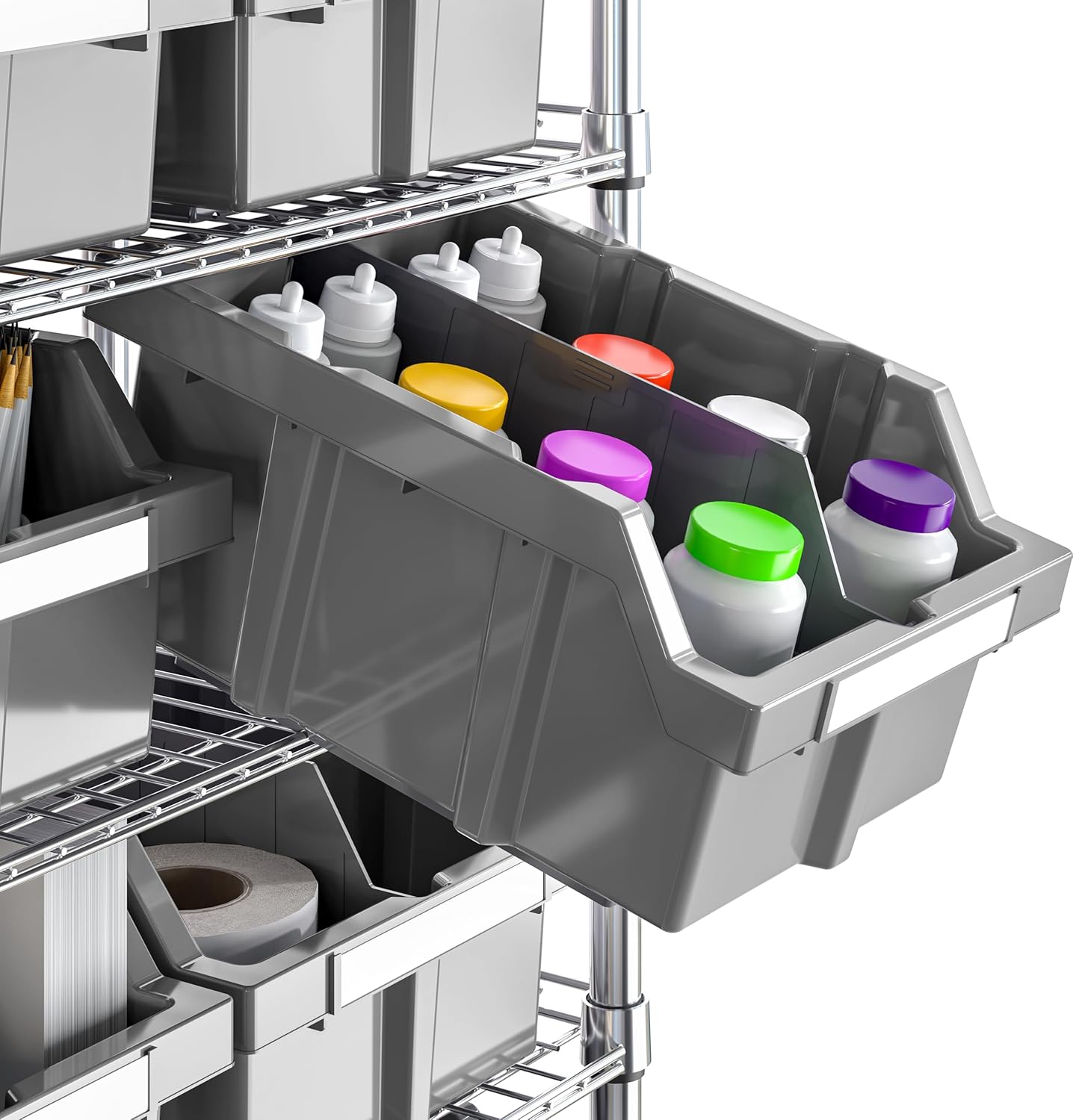 When compared to single tier wire shelving or lower grade plastic racks, the bin rack delivers superior durability and versatility for demanding settings.