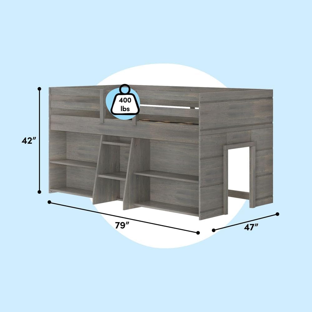 • Sturdy Construction: Made from solid wood bed materials, this model boasts a heavy-duty frame rated for up to 400 pounds. The driftwood bed finish and non-toxic, low-VOC coatings make it both safe and stylish for children’s bedrooms.