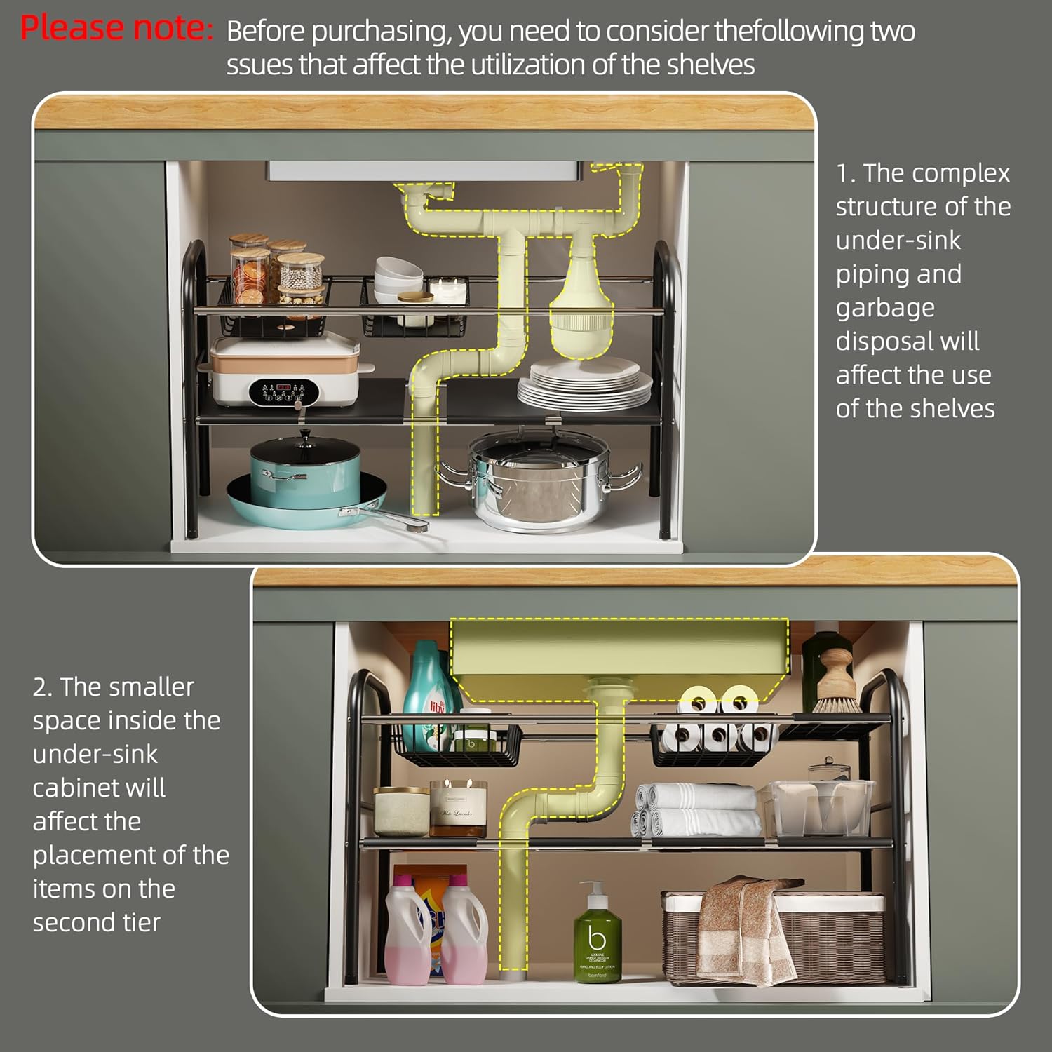 Those with specialty under sink plumbing or unusually shallow cabinets should measure carefully before purchase. If you don’t need adjustable shelves or have minimal storage needs, a simpler organizer might be enough.