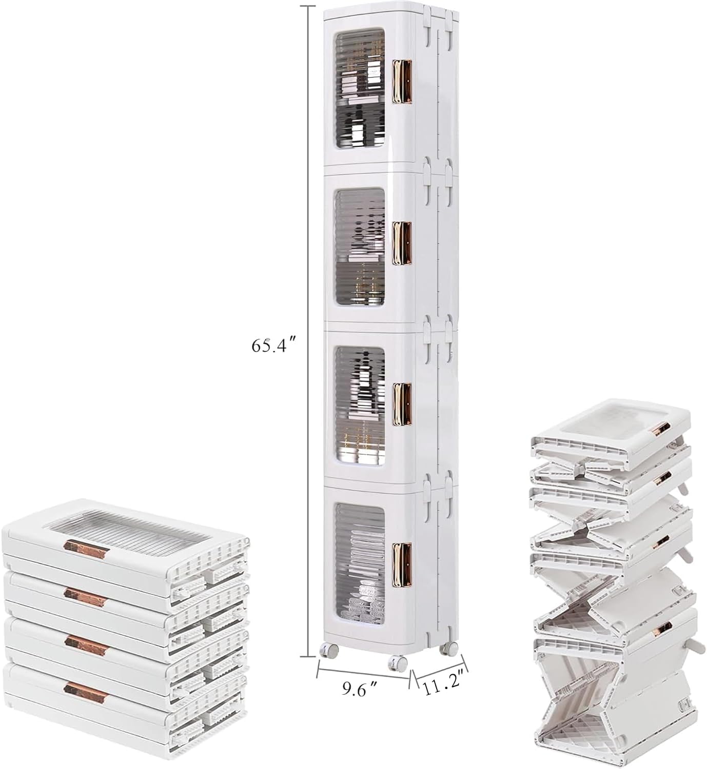 Maximize your storage in compact spaces with the VECELO 4-Tier Tall Narrow Storage Cabinet. Designed with adjustable shelves, movable wheels, and sturdy anti-tip features, this slim polypropylene cabinet is perfect for bathrooms, kitchens, or laundry rooms. Its magnetic doors protect your belongings from water and dust, while transparent panels let you easily locate items. Easy to assemble and highly versatile, this VECELO cabinet is an ideal solution for efficient and organized small-space living.